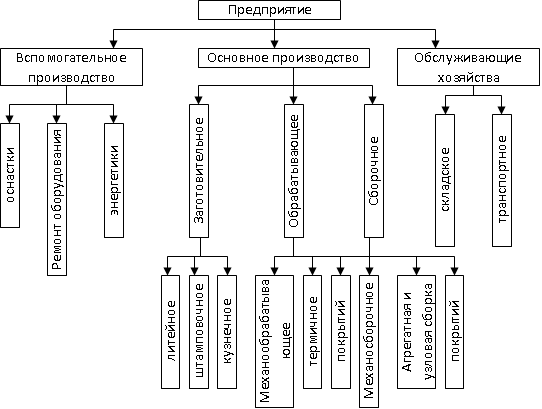Рабочий процесс состоит из основных, вспомогательных и обслуживающих подпроцессов. Основные процессы - это рабочие процессы, связанные непосредственно с созданием товара (товарной продукции). Вспомогательные процессы - это рабочие процессы, связанные с созданием или восстановлением материальной продукции для собственного потребления, которая необходима для создания товарной продукции. Обслуживающие процессы - это рабочие процессы, связанные с созданием нематериальной продукции (услуги, работы) для собственного потребления, которая необходима для создания товарной продукции.