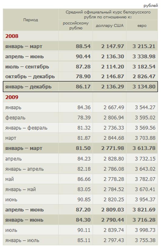 В 2009 году денежно-кредитная политика направлена на содействие устойчивым темпам экономического роста и выполнение прогнозных показателей социально-экономического развития страны. Предусмотренная привязка курса белорусского рубля к корзине иностранных валют позволит обеспечить большую стабильность номинального эффективного курса национальной валюты.