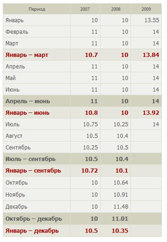 В целях стимулирования роста рублевых банковских вкладов физических и юридических лиц, повышения доходности сбережений населения ставка рефинансирования с 1 июля 2008 г. установлена на уровне 10,25 процента годовых. Ставка рефинансирования в январе – июне 2009 года оценивается на уровне 13,92 процентов годовых (Приложение 2).