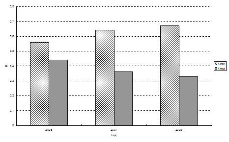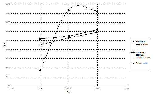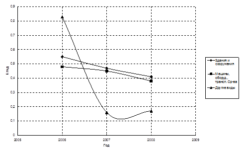 Проанализировав динамику основных средств, следует отметить, как положительный факт, рост активной части основных средств – машин и оборудования, при помощи которых производится продукция. Структура основных средств к концу 2008 года так же улучшилась: удельный вес машин и оборудования (активной части основных фондов) в общей их стоимости увеличился. Это оказало положительное влияние на рост объема товарной продукции.