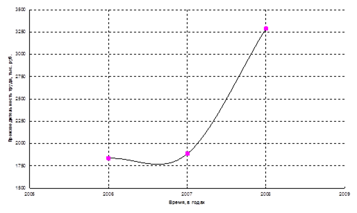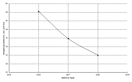 Обобщающим показателем, характеризующим уровень обеспеченности предприятия основными фондами, является фондовооруженность труда, которая последовательно снижается с 2006 по 2008 гг., а производительность труда при этом значительно возросла, что является положительным фактором, влияющим на рост фондоотдачи.