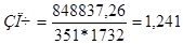 Фондоозброєність майже у 13 разів перевищує аналогічний показник у конкурента, тобто на 1 робітника приходиться 6894,67 грн. вартості основних виробничих фондів.