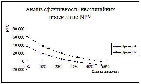 Рис. 1.1 Аналіз ефективності інвестиційних проектів за чистим приведеним доходом