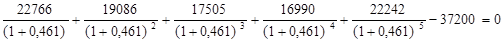 Формула передбачає підсумування грошових потоків доти, поки не буде дорівнювати «0».
