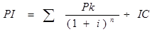 Одним із способів використання концепції приведеної вартості до аналізу інвестиційних проектів є визначення індексу прибутковості. Цей метод показує приведену вартість доходу з розрахунку на одиницю приведених витрат, або: