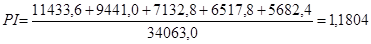 Використовуючи дані про приведену вартість чистих потоків по кожному з інвестиційних проектів обчислимо облікову дохідність для інвестиційних проектів за формулою: