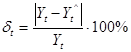 Относительная ошибка расчетных значений регрессии определяется по формуле: