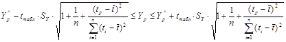 Определим границы интервального прогноза индивидуального значения показателя по формуле: