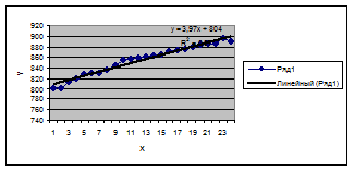 Для осуществления точечного прогноза прогнозное значение подставляем в уравнение регрессии y= 3,97 x+804. Для ближайшего периода tp