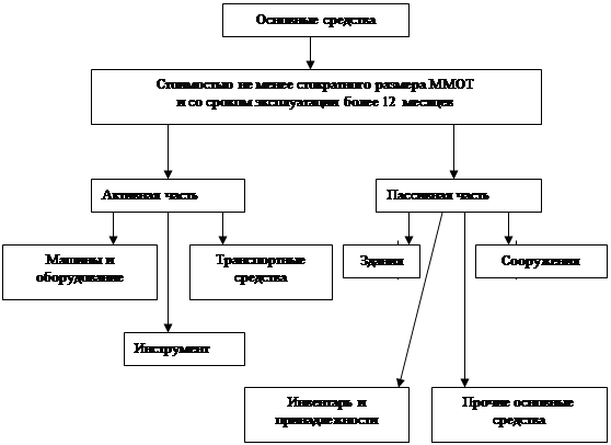 – это часть имущества предприятия, используемая в качестве средств труда при производстве продукции (выполнения работ, оказания услуг) либо для управленческих нужд фирмы в течение периода, превышающего 12 месяцев или обычный операционный цикл, и стоимостью более стократного размера минимальной месячной оплаты труда (ММОТ).