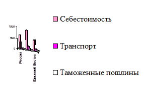 Проведенный анализ состояния нефтехимического комплекса России показывает, что потребление нефтехимической продукции в РФ будет расти опережающими темпами в значительной мере за счет пластиков. Из продуктов, входящих в "спектр" НКНХ, на пластики будет приходиться свыше 80% потребления в РФ. Конкурентоспособность на внутреннем рынке в ближайшее время будет достаточно высока. Значительные транспортные расходы и таможенные пошлины создают преимущества для российских производителей на внутреннем рынке (рисунок 2).