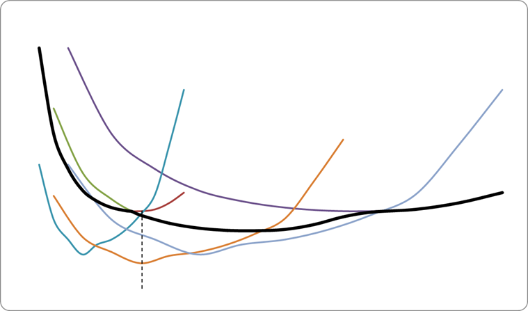 ). Вона є кривою, що огинає всі можливі криві короткострокових середніх загальних витрат ATC