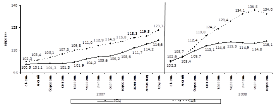 Втримати інфляцію на стабільно низькому рівні найближчим часом навряд чи вдасться, що засвідчує відновлення тенденції до зростання цін – споживча інфляція становила 1,1% у вересні 2008 р., за підсумком жовтня є підстави очікувати подальшого погіршення цього показника. Водночас, на нашу думку, в умовах кризового падіння виробництва у системоутворюючих галузях української економіки (металургії та будівництва, сільському господарстві) надмірна концентрація зусиль на стримуванні цін є недоцільною і може негативно позначитися на фінансовому становищі українських виробників. В кризових умовах економічно більш виправданою виглядає виважена стимулююча політика, яка дозволить пом’якшити наслідки фінансової та економічної кризи для вітчизняних підприємств.