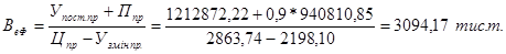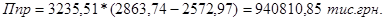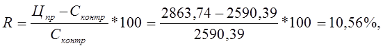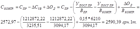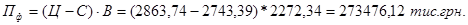 Пконтр = (Ц-Сконтр) *Вконтр = (2863,74-2590,39) *3094,17 = 845798,26 тис. грн.