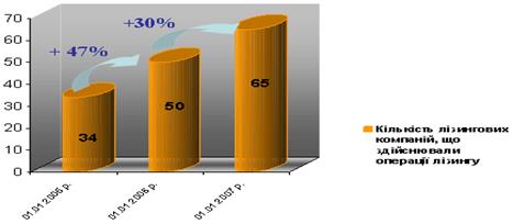Упродовж 2005-2006 років кількість лізингових компаній збільшилася на 30% (рис.2.1). Цьому сприяло декілька факторів: зростання зацікавленості у лізингу з боку іноземних банків, що увійшли на український ринок минулого року; зростання обізнаності щодо лізингу серед широкої громадськості та державних службовців; швидкий розвиток фінансових ринків України, а також кращий доступ до кредитних ресурсів.