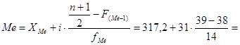 – номер девятой децили. Она находится в 5-ом интервале 317,2 – 348,2