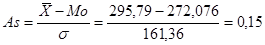 Величина показателя асимметрии положительна, следовательно асимметрия правосторонняя.