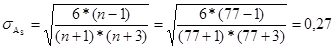Вывод: с вероятностью 99,7% асимметрия существенна (так как 9,70 > 3) и распределение признака в генеральной совокупности не является симметричным. Вследствие несимметричности распределения показатели эксцесса не рассчитываются.