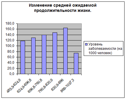 Вывод: наименьший показатель признака 10% регионов с наибольшими значениями по уровню заболеваемости на 1000 человек населения: болезни органов дыхания в 5,48 раза выше наивысшего показателя уровня заболеваемости на 1000 человек населения: болезни органов дыхания 10% регионов с наименьшими значениями признака.