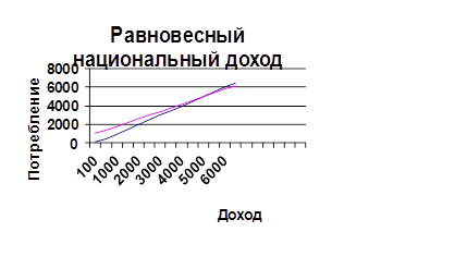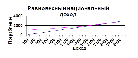 Рис. 1. Равновесный национальный доход (при МРС = 0,5)