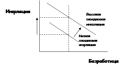 В любой момент времени правительство, управляющее совокупными расходами, может выбрать на кривой Филлипса определенную комбинацию уровней инфляции и безработицы для краткосрочного временного интервала. Этот выбор зависит от ожидаемого темпа инфляции: чем выше ожидаемая инфляция, тем выше располагается кривая Филлипса. Выбор экономической политики в этом случае затрудняется, так как фактический уровень инфляции будет выше для любого уровня безработицы.
