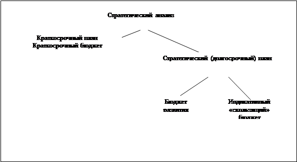 Основой составления сводных бюджетов является стратегический план, который определяет основные приоритеты и цели развития (в том числе в количественном выражении) и намечает механизмы достижения поставленных целей. На основе стратегического плана разрабатываются три сводных бюджета: один краткосрочный бюджет и два долгосрочных бюджета (бюджет развития и индикативный "скользящий" бюджет). Бюджеты различаются по срокам, функциям, степени обязательности исполнения, возможности корректировки.