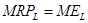 у суспільстві. У точці рівноваги , або – граничні видатки на ресурс рівні цінності граничного продукту праці. Дана рівність є критерієм ефективності розподілу ресурсів.