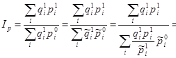 Iсп=P1:P0=∑Р1q1/∑q1:∑ Р0q0/∑q0=∑Р1q1/∑q1*∑q0/∑ Р0q0