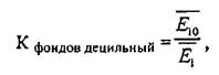Еще один известный способ соотношения заработной платы наиболее и наименее оплачиваемых работников. Все работники разбиваются на равные по численности десяти -двадцати, - или двадцатипяти процентовые группы, а затем доход, полученный последней группой, делят на доход полученный первой группой. Получают децильные, квинтильный, квартальные коэффициенты фондов.