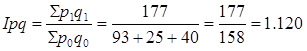 Iq = Ipq / Ip = 1,120 / 1,025 = 1,093 или 109,3%