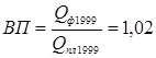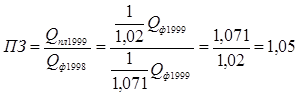 Показатель динамики производительности труда за 1999г. по сравнению с 1998г.: