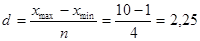 Число групп задано, поэтому интервал рассчитаем по формуле: