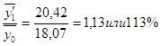= =20,42-18,07=+2,35 %– в действующих ценах;
