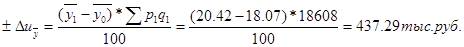 Абсолютный прирост суммы издержек обращения составил 591 тыс. руб., в том числе за счет роста уровня издержек (относительная сумма перерасхода) 437,29 тыс. руб., а за счет динамики товарооборота 153,23 тыс. руб.