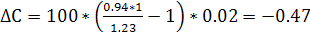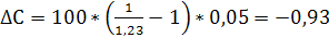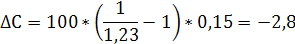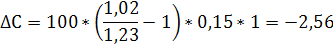 100▪(1,02/1,23-1)▪0,15= -2,56