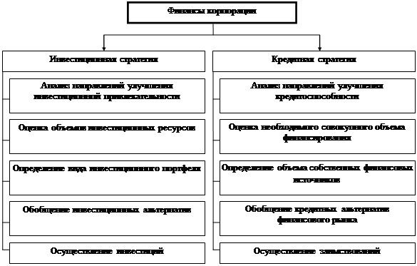 В этой связи возникает необходимость формирования инвестиционной стратегии корпорации. В совокупности инвестиционная стратегия и кредитная стратегия составляют финансовую стратегию корпорации (рис.1.1). [1]
