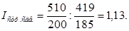 Следовательно, в среднем за исследуемый период, объём производства продукции увеличивался на 13%.
