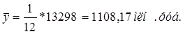 Следовательно, в среднем за 12 полугодий объём производства продукции составлял 1 108,17 млн. руб.