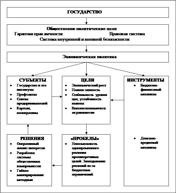 Экономическая политика государства, по определению известного ученного ФРГ Х.Гирша, представляет собой совокупность мер, направленных на то, чтобы упорядочить ход экономических процессов, оказать на них влияние или непосредственно предопределить их протекание.