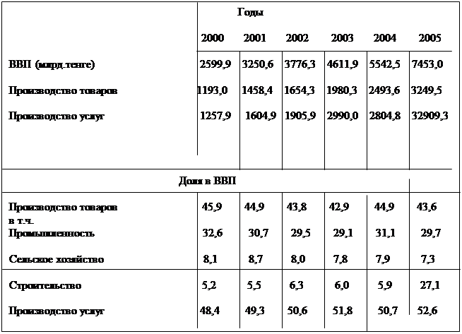 2.1. Динамика показателей структурной экономики Республики Казахстан за 2000-2005 годы.
