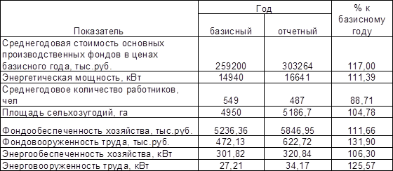 Фондообеспеченность предприятия возросла по сравнению с 1997 годом на 17%, фондовооруженность труда на 11,39%, энергообеспеченность на 6,3%, а энерговооруженность труда на 25,57%. Обеспеченность животноводческими помещениями составила 104,67% к уровню прошлого года. Это произошло за счет уменьшения поголовья скота. То, что обеспеченность животноводческими помещениями составляет 117% говорит о неэффективном их использовании.