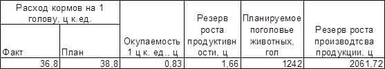 Использование всех выявленных резервов приведет к увеличению объема молока на 12,5%. При этом произойдет увеличение кормовой базы на 5850 ц к.ед., что в стоимостном выражении составит 7137 тыс.руб. (585 х 12,2) на 1 тонну молока.