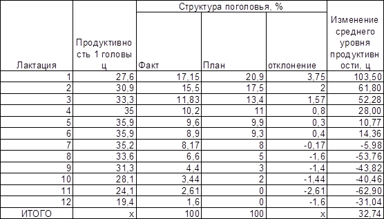 2.5. Анализ продуктивности скота и факторов, определяющих ее уровень