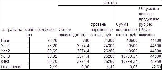 Расчет влияние факторов изменение затрат на рубль продукции