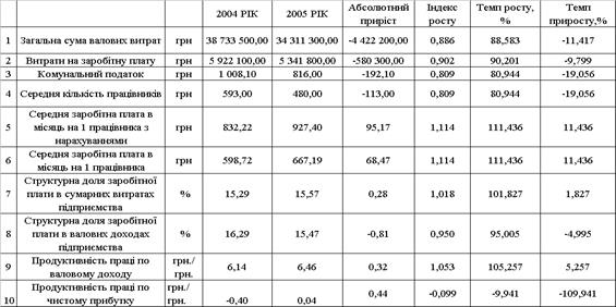 – статистична оцінка динаміки абсолютних показників та структури доходів підприємства, динаміки рівней продуктивності праці та структурної частини заробітної плати в витратах підприємства.