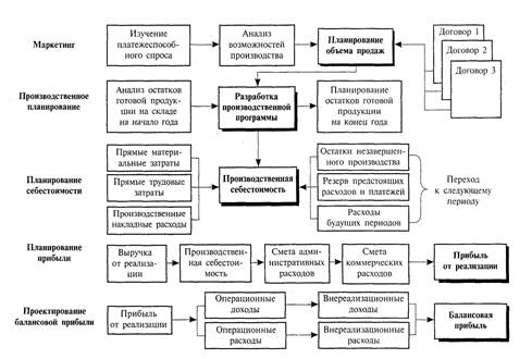 На основе бюджетирования разрабатываются компьютерно-ориентированные модели финансового планирования прибыли. Алгоритм планирования прибыли основан на поэтапной подготовке исходных данных для финансового планирования. Здесь осуществляется взаимосвязь организационного, производственного и финансового планирования: