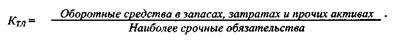 характеризует общую обеспеченность предприятия оборотными и денежными средствами для ведения хозяйственной деятельности, своевременного погашения его срочных обязательств: