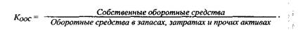 характеризует наличие собственных оборотных средств у предприятия, необходимых для его финансовой устойчивости: