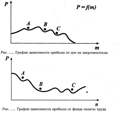 На рис. 1.3 точка А характеризует повышенную устойчивость организации от роста цен на энергоносители; точка С, напротив, сигнализирует о предстоящей катастрофе, которая может наступить даже при незначительном повышении цен на этот компонент производства.