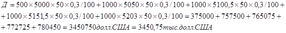 = 5100,5 × 1,01 = 5151,5 дол. США